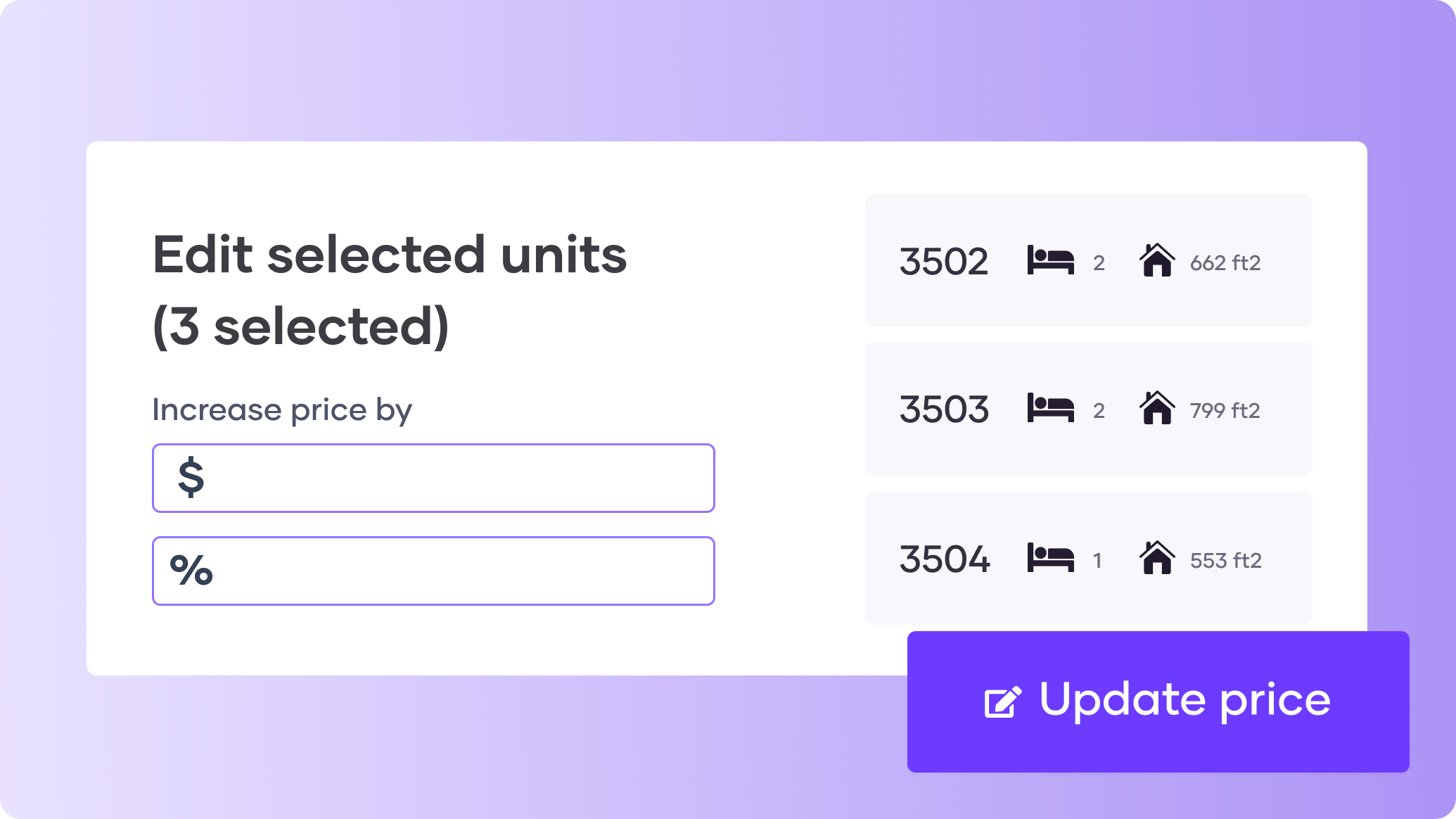 Update prices across dozens of units in seconds, with full change history.